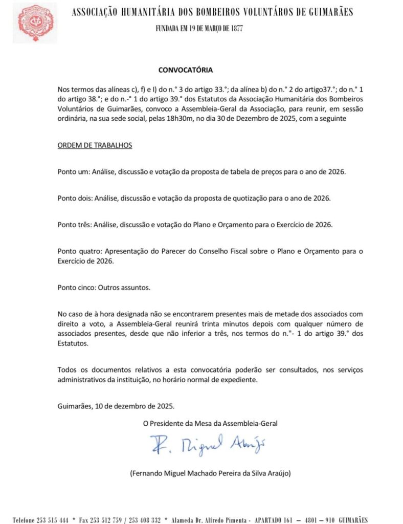 Assim, a criação da Escola de Infantes e Cadetes dos Bombeiros Voluntários de Guimarães representa «um passo fundamental» no fortalecimento do envolvimento cívico e comunitário das novas gerações. A nova oferta «tem como missão formar crianças/jovens conscientes, responsáveis e comprometidos com os valores da cidadania, solidariedade e serviço à comunidade, promovendo, desde cedo, o espírito de entreajuda, disciplina, respeito e liderança», aponta o comandante Luís Andrade.